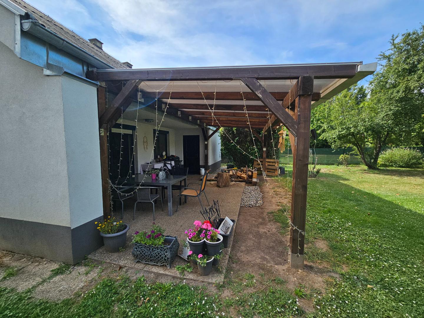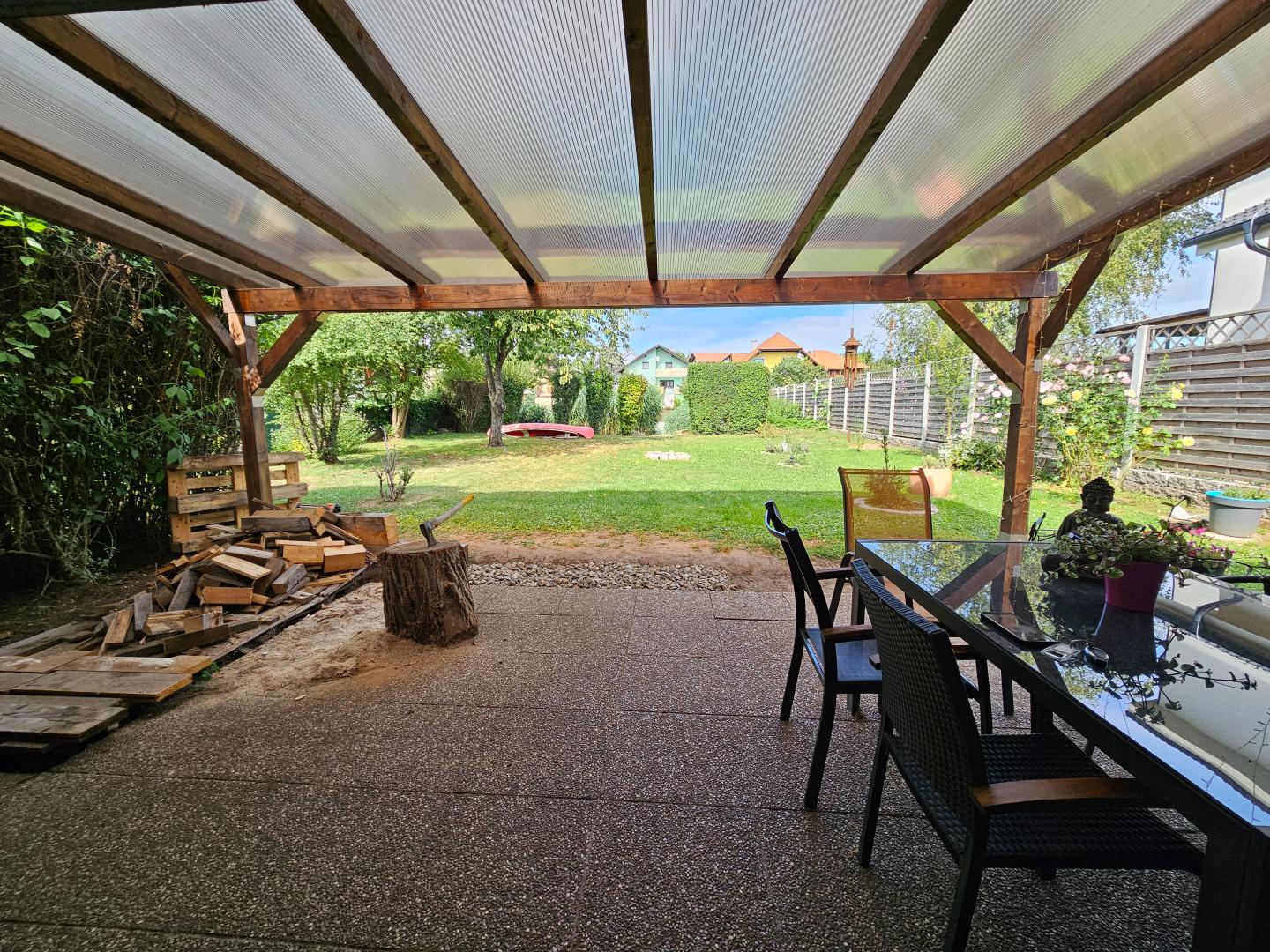 Überdachte Terrasse Ansicht in den Garten Richtung