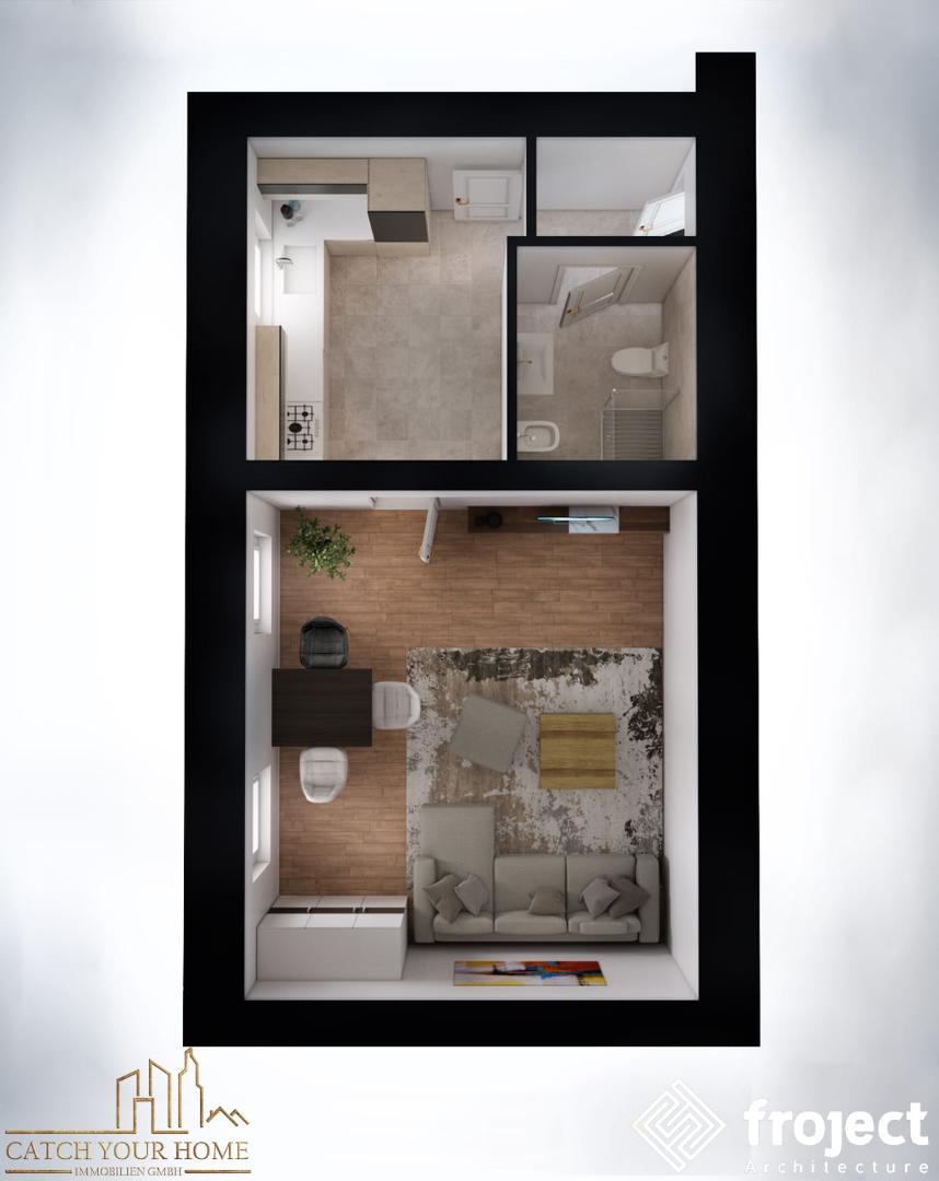 Die Raumaufteilung:– Wohn/Schlafzimmer