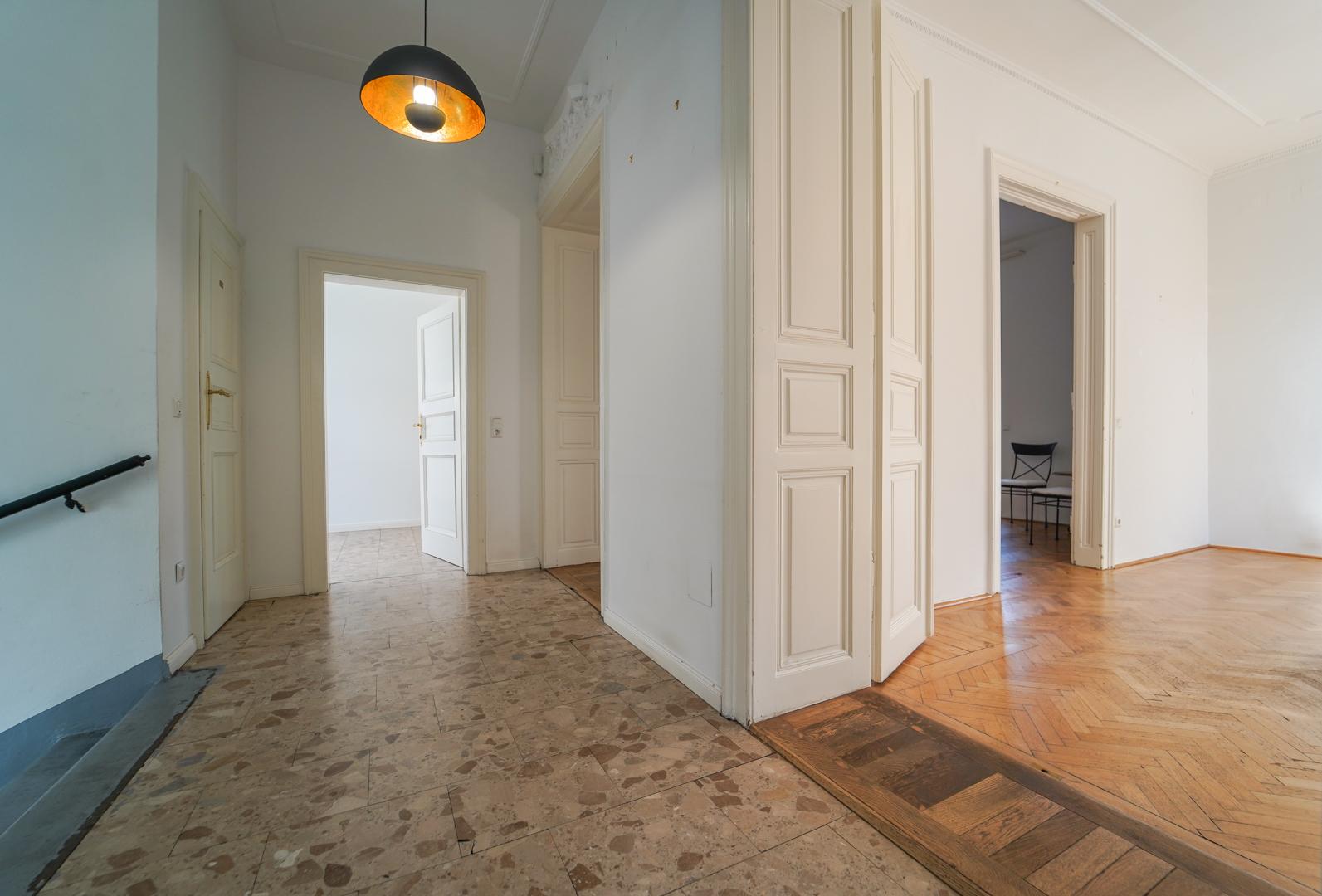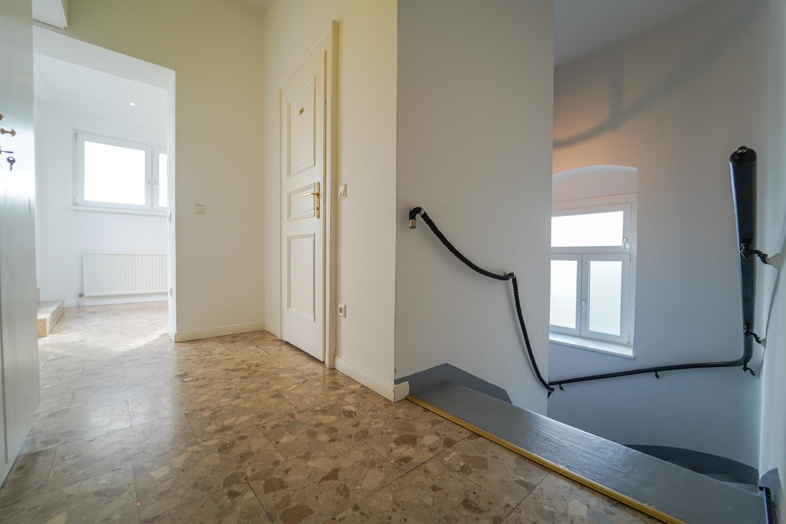 – Erdgeschoss: 3 Zimmer, Vorraum, WC, Treppenaufgang