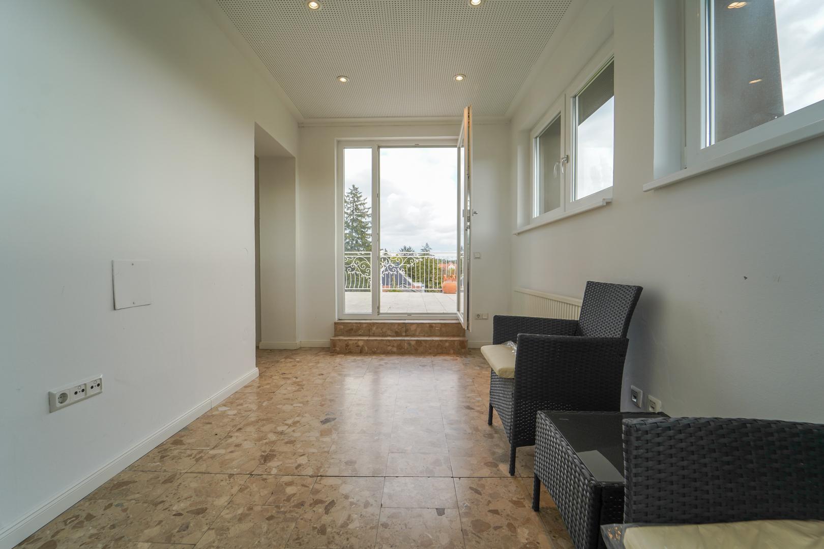 11 ganze Zimmer und eine tolle Aussicht von der Dachterrasse.